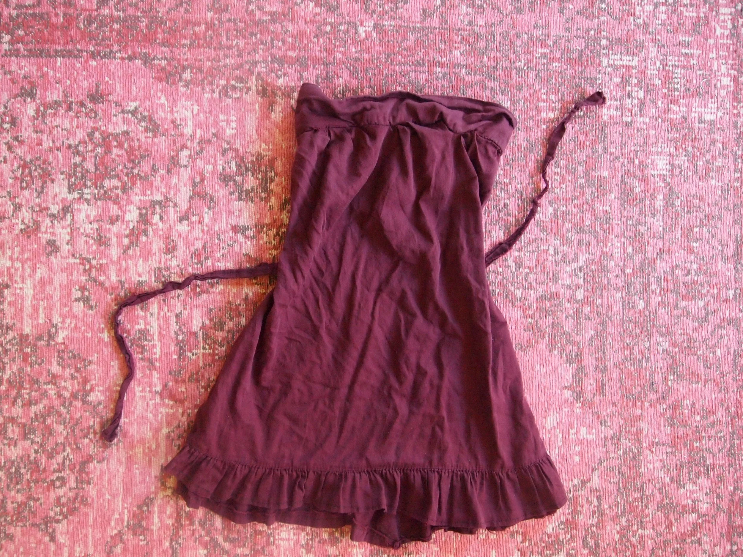 Details: Converted to strapless, added ties in the back to cinch waist.